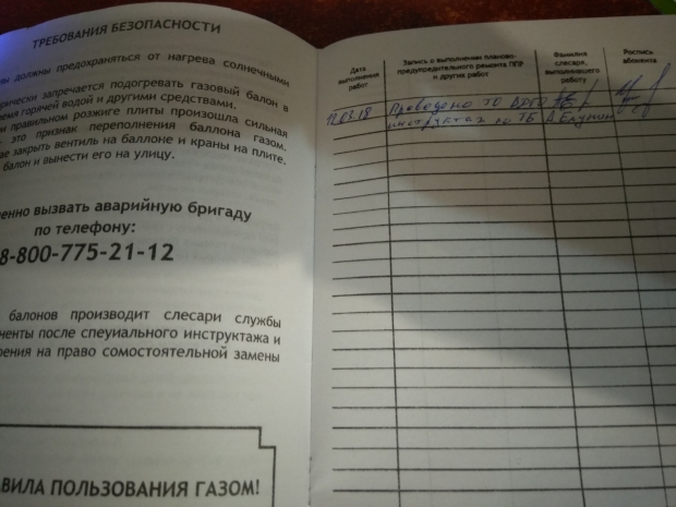 Всем здравствуйте! Объяснив ему, что мне это нужно не только для домашнего региона, он вписал данные СТС в книжку и сняв себе копию, присовокупил к делу. Цена вопроса 384 рубля и потом раз в год такая же сумма за обслуживание оборудования. Я не тешу себя надеждой,что мне это поможет на югах, (а вдруг!) но дома я вопрос решил. Я не эксплуатирую прицеп зимой, поэтому на весенне-летне-раннеосенний период пропанбутановой смеси мне хватит, главное без геморроя с обменом баллонов. И ещё новшество у газовиков: все баллоны старше 1979 года выпуска просрочены и не принимаются к обмену.