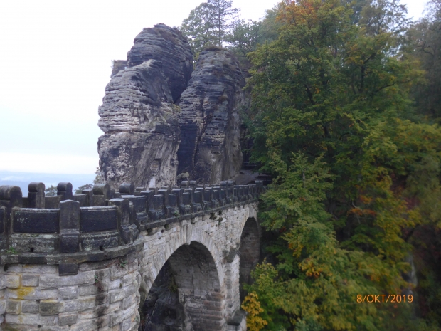 Вздымаются эти скалы-пальцы прямо над Эльбой, которая в этом месте делает крутую петлю. И между этими скалами построен Бастайский мост на высоте 195 метров, длиной 76,5 м – это чудо инженерной мысли первой половины XIX века.