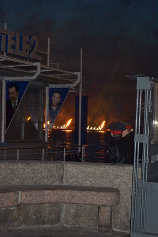 Все набережные в районе стрелки Васильевского острова, Эрмитажа, Дворцовой площади перекрыты. Вход только по пригласительным билетам, которых у нас естественно нет. Дворцовый мост забит людьми наглухо, многие место занимали загодя, за несколько часов, некоторые с обеда!!!