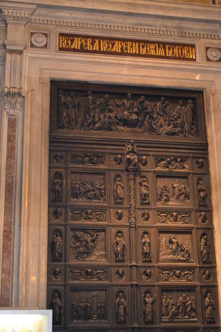 От рядом находившейся экскурсии узнаем, что центральный купол собора расписывал великий русский художник Карл Брюллов.