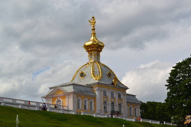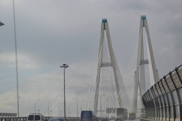 Собирались вставать часов в восемь... Херрасдва... :hahaha: Проспали до половины десятого. Французы за это время с большой площадки все съехали, осталось с десяток автодомов на малой площадке. Тоже собираемся, умываемся, завтракаем и выезжаем в Петергоф. Ехать с кемпинга очень удобно. Проспект Стачек плавно переходит в Петергофское шоссе. Все таки красив Петербург при любой погоде. :good: