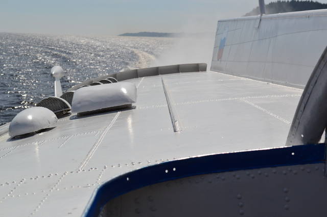 Обратно до Сортавалы шли 50 минут. Я в пути немного пофоткал с открытой палубы и внутри метеора. Про пейзажи не забываем тоже.