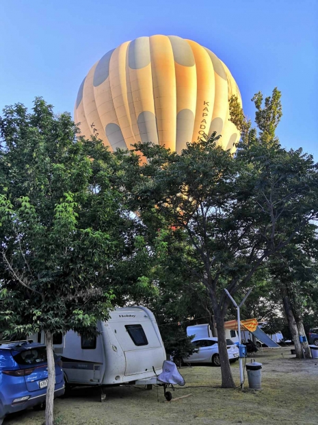 Мы встали на пару ночей в Goreme Camping Aquapark. Есть все условия + стирка за 100 лир. За пару часов перед закатом, за забором кемпинга, едут колонны квадроциклов. В остальном в кемпинге тихо. До туристического центра Гереме надо пройти метров 600-700. Городок туристический, цены в кафешках бывают заоблачные... В Гереме были 2 дня и 2 ночи. По утрам смотрели взлет/посадку шаров, и из кемпинга, сидя у каравана с утренним чаем, и выезжали к местам взлетов/посадок/на смотровые площадки. Поужинали в ресторане - цены не порадовали совсем.. Съездили за 30 км в Деринкую, посмотрели подземный город (билеты по 250 лир), дочке (12 лет) понравилось. Съездили, побродили по "Долине любви"... Мы в Каппадокии не впервые, место интересное, рекомендую.