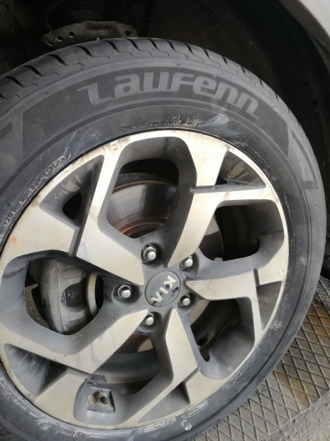 Стою чешу репу... Пока думываю, хозяин лавки выкатывает еще колеса в том же размере, с наклейкой Hankook но с брендом Laufenn. И поясняет, что это суб-бренд Hankook для завоевания азиатского рынка, что шины делаются на тех же заводах Hankook, притаскивает каталоги, показывает, объясняет. Осматриваю предложенные шины: тот же размер, свежая дата выпуска, указан Венгерский завод. Цена 2300 лир/штука. В общем купил комплект. Отцепил караван, заехал на пост. С часок попили чайку и на наших глазах Спортик обрел новые тапки. Старые были совсем уж никудышные, лысые и трещины уже пошли.