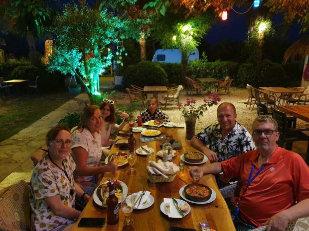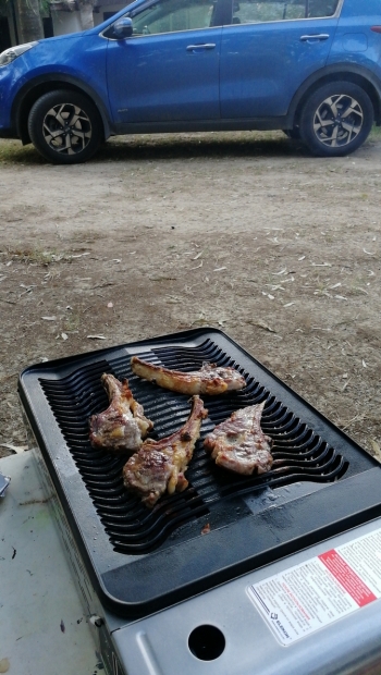 А в кемпинге небольшие посиделки по непонятному поводу :) Накрыт общий стол, хозяин кемпинга Рауль уже хорошо подвыпивши, угощает всех чачей и шашлыком. За столом несколько экипажей караванеров из