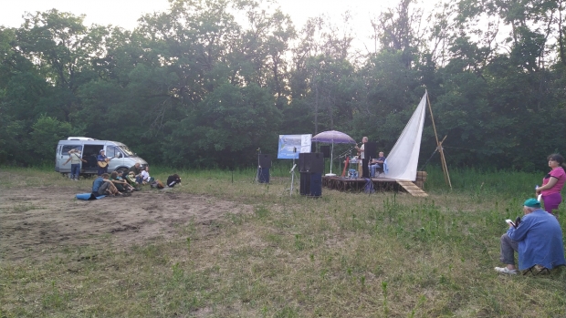 Мы опять не прогадали. Замечательный, душевный, домашний фестиваль. Народу было не очень много, но было много наших старых знакомых с которыми мы регулярно встречаемся на подобных мероприятиях. На фото видно очень мало людей. Но это потому, что очень удачно выбрано место на большой опушке и из каждой палатки было очень хорошо всё слышно а некоторым и видно. Мы расположились напротив сцены и нам всё было видно и слышно тоже. Умеют же барды выбирать такие удачные места, даже ветра почти не было. Проезд к месту последний километр по узкой лесной песчанной дороге с лёгким спуском. Нас всех встречали в месте съезда волонтёры с рациями, чтобы избежать встречных разъездов. Место выбираешь по своему желанию и разумеется кто раньше приехал тому и люкс. Мы всегда стараемся приехать заранее до начала. Транспорт проехал всякий, был даже один автодом-альковник и мы с прицепом. Каждый по желанию мог завести себе костёр, и их было не мало. Гитара по кругу не смолкала до самого утра. Никто нас не беспокоил, мы были глубоко в лесу. В 100м от сцены находится Воронежское водохранилище, но было холодновато, не купались. На следующий год постараемся опять приехать и другим советуем.