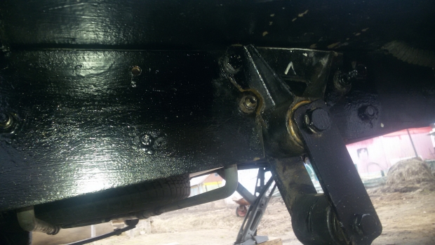 Сзади тоже кронштейны рессор соединяются между собой такой же трубой с фланцами и стянуты болтами.