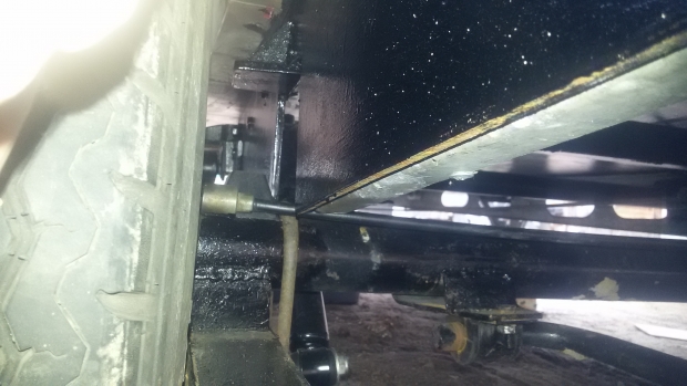 вид с боку.выставлен по уровню,рессоры разгружены. Растояние между колесом и аркой примерно 13 см. Многовато.При загрузке каравана,думаю,что будет нормально,со временем они ещё и просядут.