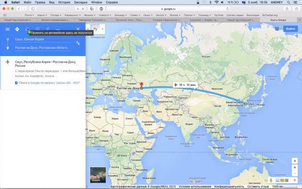 Если в гугл-картах ввести маршрут Сеул-Ростов, то получим "Проехать на автомобиле здесь не получится" :D