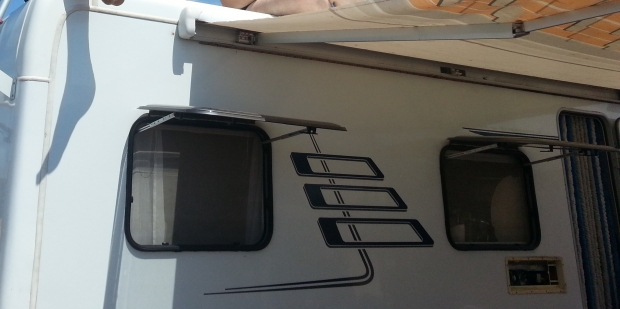 Fiamma F45ti.На 4- или 3+(не новая поди).Корпус белый и материал голубо-желто-белый.Крепеж оставлю себе.