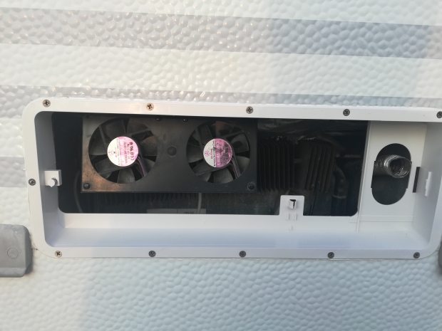 Думается, что маленькая вставка, является скорее зимней. Её установка несколько снижает эффективность работы выхлопа и соответственно работы холодильника. У меня штатно этой заглушки не было. На новых решётках есть и большие заглушки на сами решётки и маленькая на выхлоп. Большие иногда ставлю сейчас, когда ветер в этот борт. На выхлоп только на мойке. Штатно, у меня вся конструкция выхлопа ничем не крепится. На холодильник надета Г-образная трубка, а на неё последняя трубка выхлопа (на вашей картинке внизу слева с пластиком с дырочками) с надетой алюминиевой пластиной. И всё это просто упирается в решётку. Т.е. её можно шевелить из стороны в сторону с достаточно большой степенью свободы.