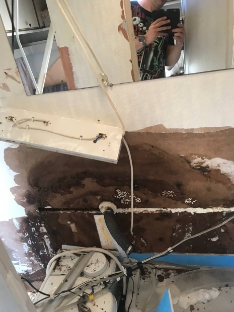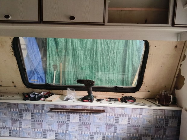Вторым был ремонт передней части, там где газовый баллон. Вскрытие показало что надо менять всё. В итоге получил полностью новый и усиленный перед прицепа. Последним был ремонт задней левой части и кухонной зоны, там обнаружилась гниль и я не стал ждать разрушения конструкций. По результату получил полностью отремонтированный и усиленный зад прицепа, кухня закреплена на дополнительные бруски на 501-й пур-клей.
