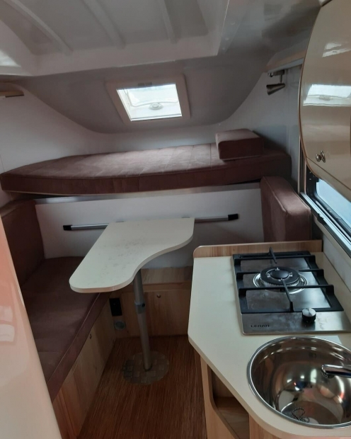 В жилом модуле установлены кухня с раковиной и плитой с одной конфоркой, газовый баллон на пять килограммов, душ и биотуалет, 70-литровый бак для чистой воды, система нагрева воды, автономный отопитель и диван-кровать, рассчитанный на двух человек.