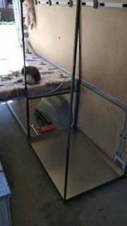 душевая кабина состоит из трех стенок сваренных из профиля, поддон сварной из обычного листа железа толщиной 2 мм