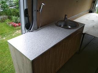 раковина и кран тоже из всем известного строй мага. Маленькая леечка сделана для легкого ополаскивания на улице после соленой воды моря