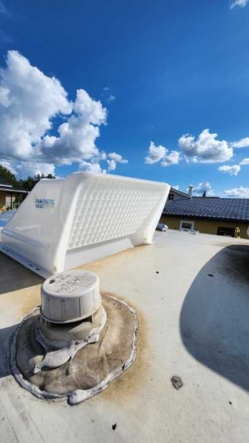 4. Вентиляция . Штаный люк - обычный как у большинства автодомов. И им нельзя пользоваться в дороге и при дожде. Эту проблему решает "колпак" на штатный люк, который просто ставиться поверх люка.